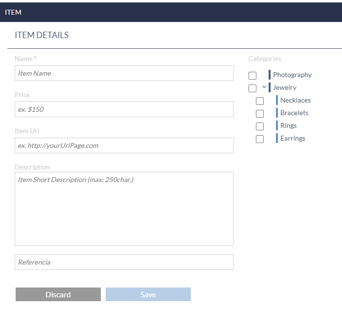 On the left side, you will see a form with the product data. You must fill in the following data: