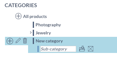In the section 'Catalog' > 'Extra resources' you will find a category tree. You can create the categories and subcategories using the + button