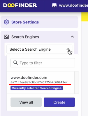 In the 'DOOFINDER HASH ID' field (also called ‘search engine id'), we will add the ID number that corresponds to the search engine.