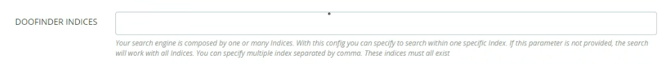 In the 'DOOFINDER INDEXES' field, you can add the same indexes that you have set up in the Doofinder dashboard for that Product Feed.