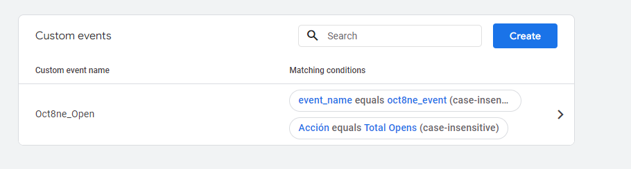 In the Custom Event Name field, we'll type in the name of the new event, for example, Oct8ne_Open