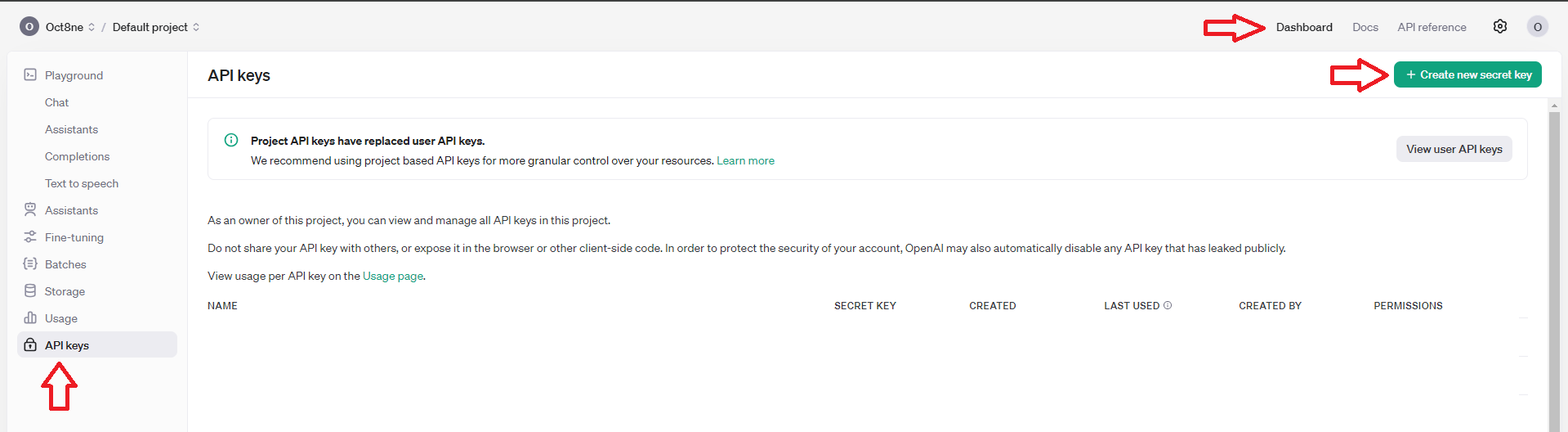 Openai, despite having introduced this new feature and recommending its use, allows users to make use of the pre-project functionality when creating API Keys (at least for now, it is possible that it will be removed).