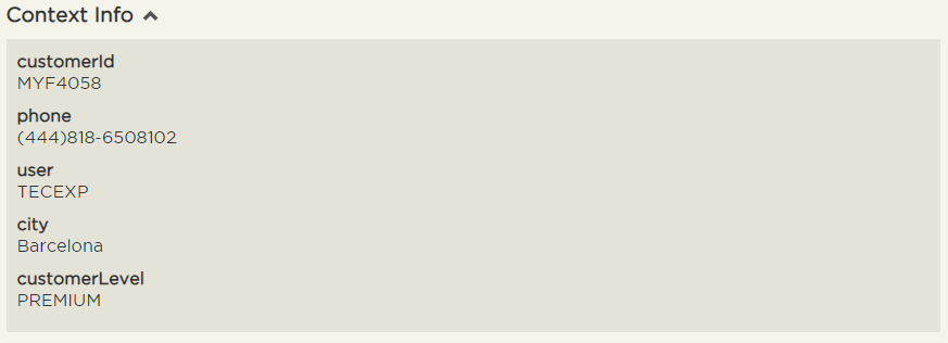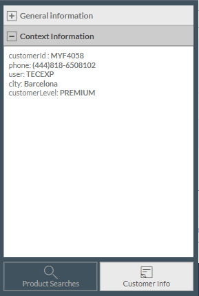 El objeto JS oct8ne.options, es un objeto opcional que puede contener dentro el objeto context, que es opcional y custom a su vez. La información representada dentro de este objeto es arbitraria y se mostrará dentro del visor (en la sección Customer info) y en la sección de detalle de historial de chats. El nombre de las variables y su valor es escogido, en cualquier caso, por cada cliente en función de sus necesidades.