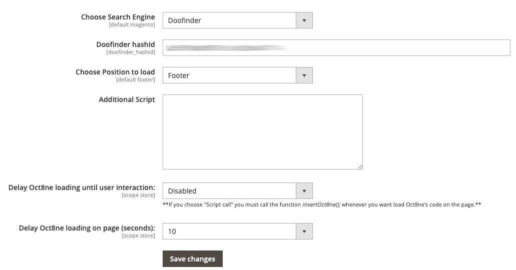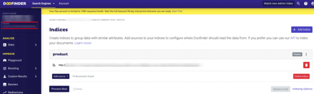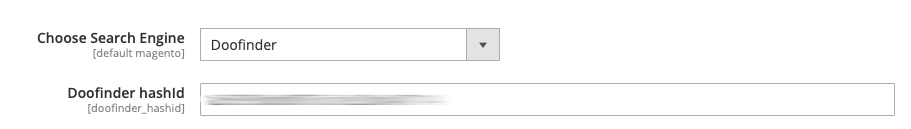 3.- En el campo “Doofinder hashid” hay que introducir los datos de Doofinder correspondientes al hashid.