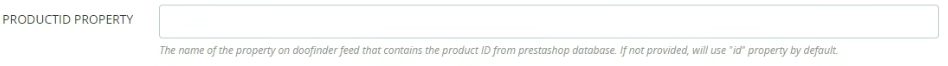En el campo ‘DOOFINDER PRODUCTID PROPERTY’, debes añadir la propiedad del feed que corresponde con el ID interno del producto dentro del Prestashop. Por defecto es ‘id’ pero es posible que se haya modificado. Aquí deberás configurar ese nuevo ‘mapeo’