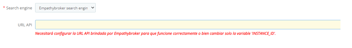 2.- En el campo URL API, añadiremos la URL_SEARCh que nos ha proporcionado Empathy.