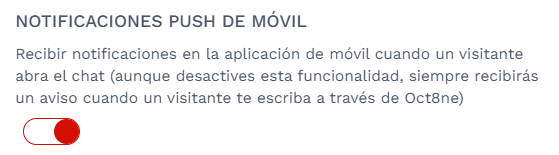 Aunque desactives esta funcionalidad, siempre recibirás una notificación cuando un visitante te escriba a través de Oct8ne y que ya esté siendo atendido por ti. Esto garantiza que no pierdas ninguna conversación importante.