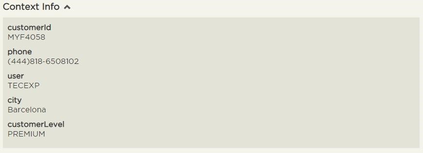 L'oggetto JS oct8ne.options è un oggetto facoltativo che può contenere il contesto dell'oggetto all'interno, che è sia facoltativo che personalizzato. Le informazioni rappresentate all'interno di questo oggetto sono arbitrarie e verranno visualizzate all'interno del visualizzatore (nella sezione Informazioni cliente) e nei dettagli della sezione cronologia chat. Il nome delle variabili e i loro valori sono scelti da ciascun cliente, a seconda delle loro esigenze.